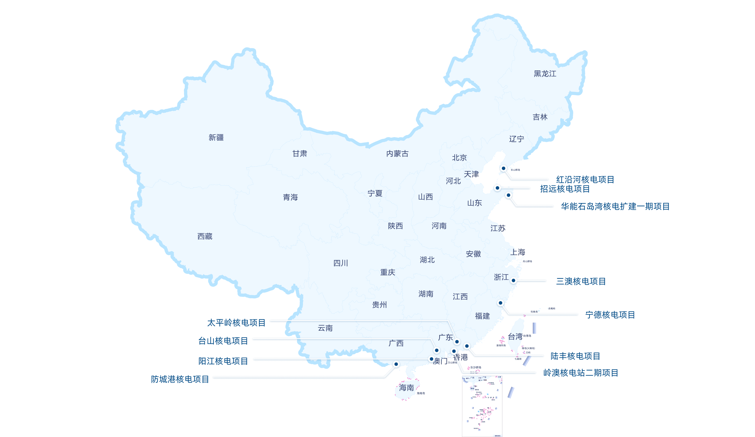 備注:此圖參考 審圖號GS(2021)5449號 自然資源部監制,僅用于中廣核旗下項目分布示意
